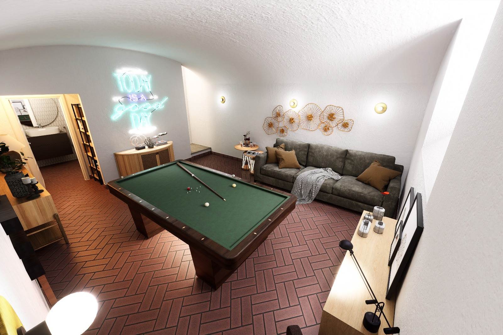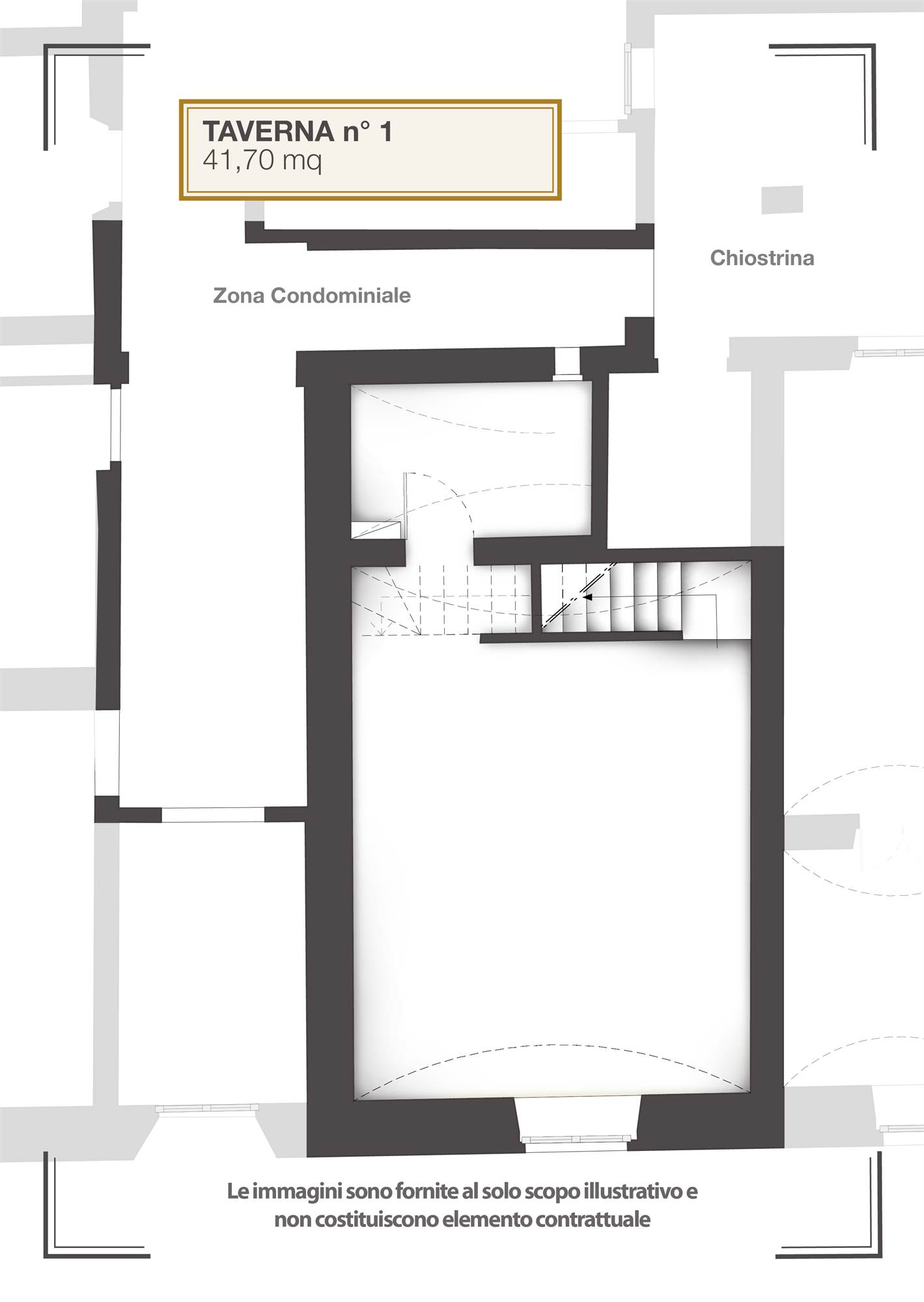 Taverna di 42 mq con ulteriore servizio. Posto auto privato con accesso da cancello elettrico automatico con predisposizione per una colonnina elettrica. Cantina